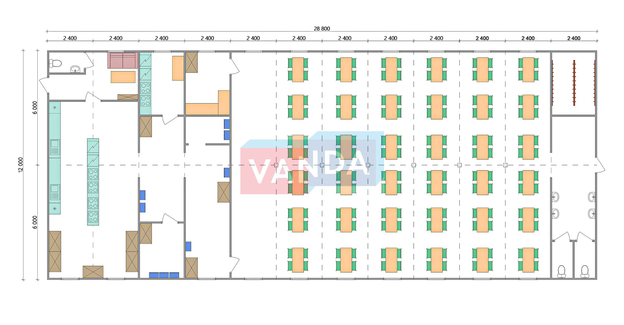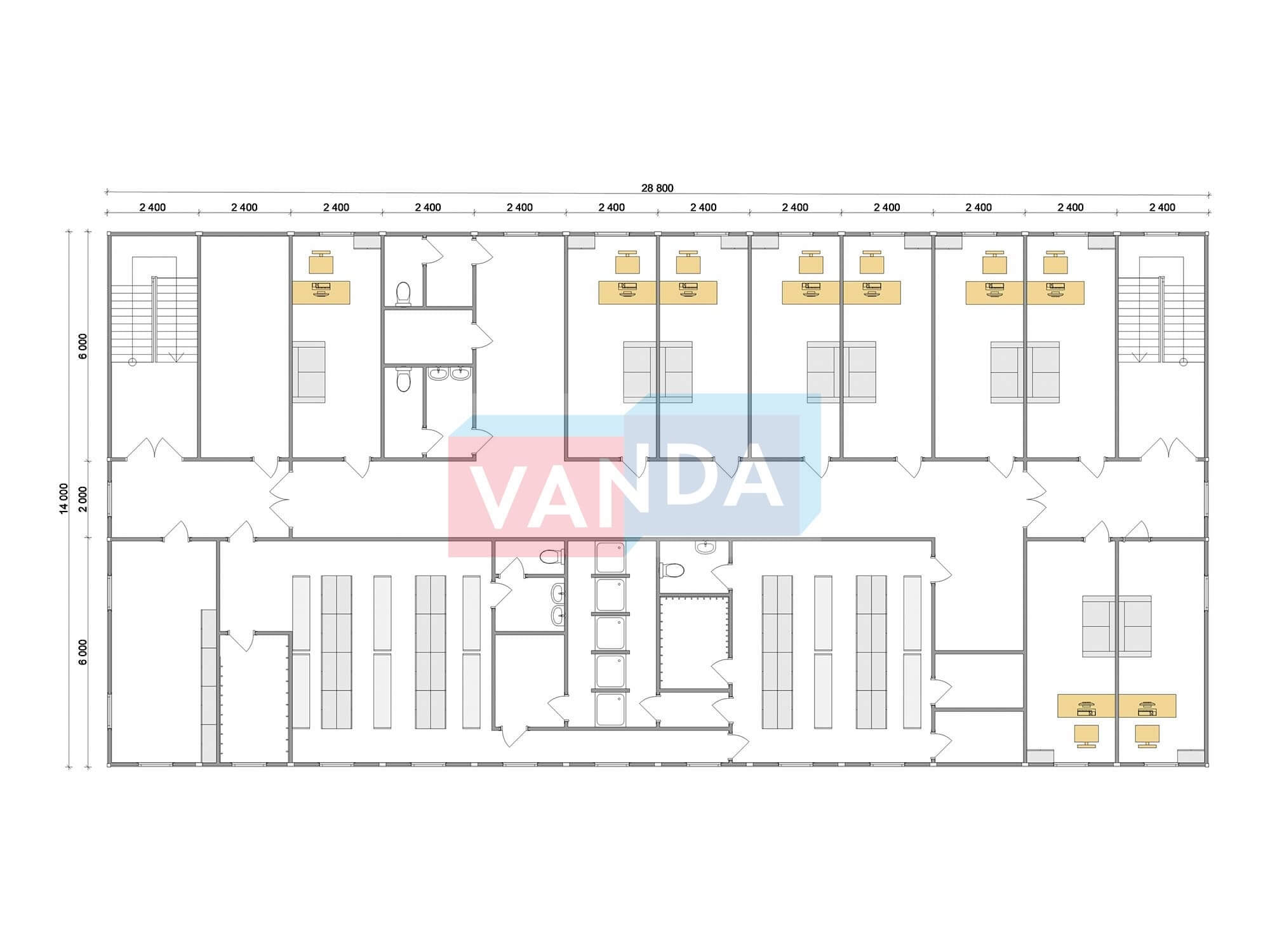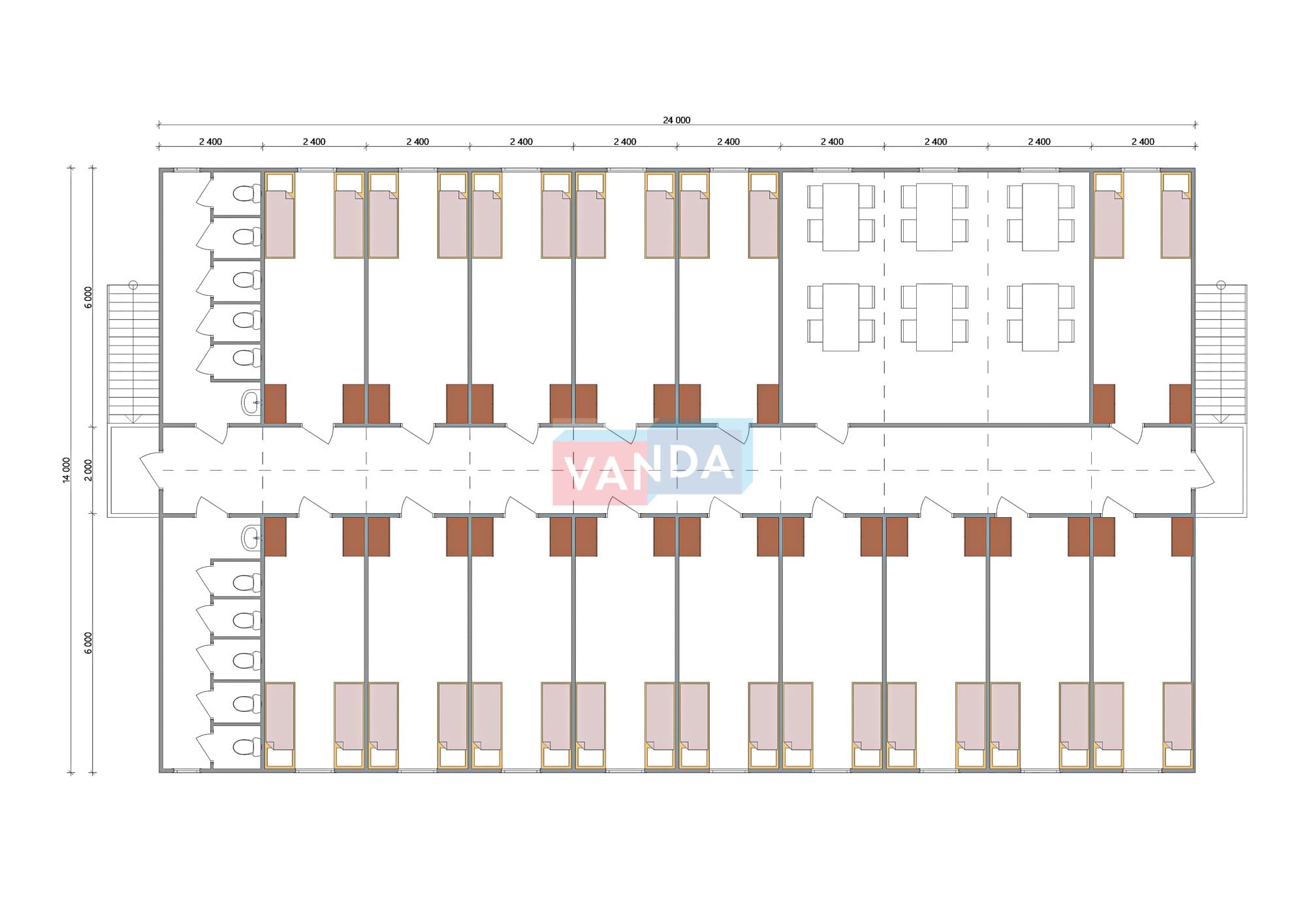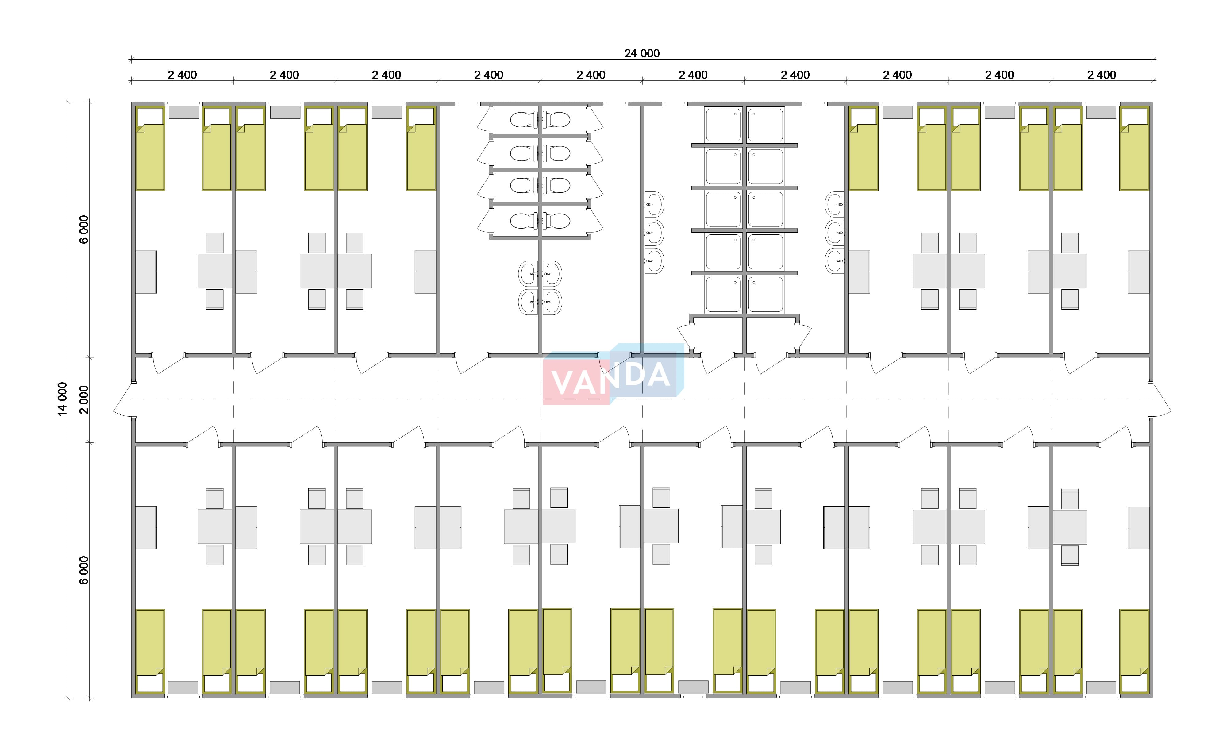 Проект вахтового посёлка 14.0х57,6 14x57.6 806.4 OSB 9 мм. Оцинкованный профлист 20 700 000 р. Уточняйте у менеджера
