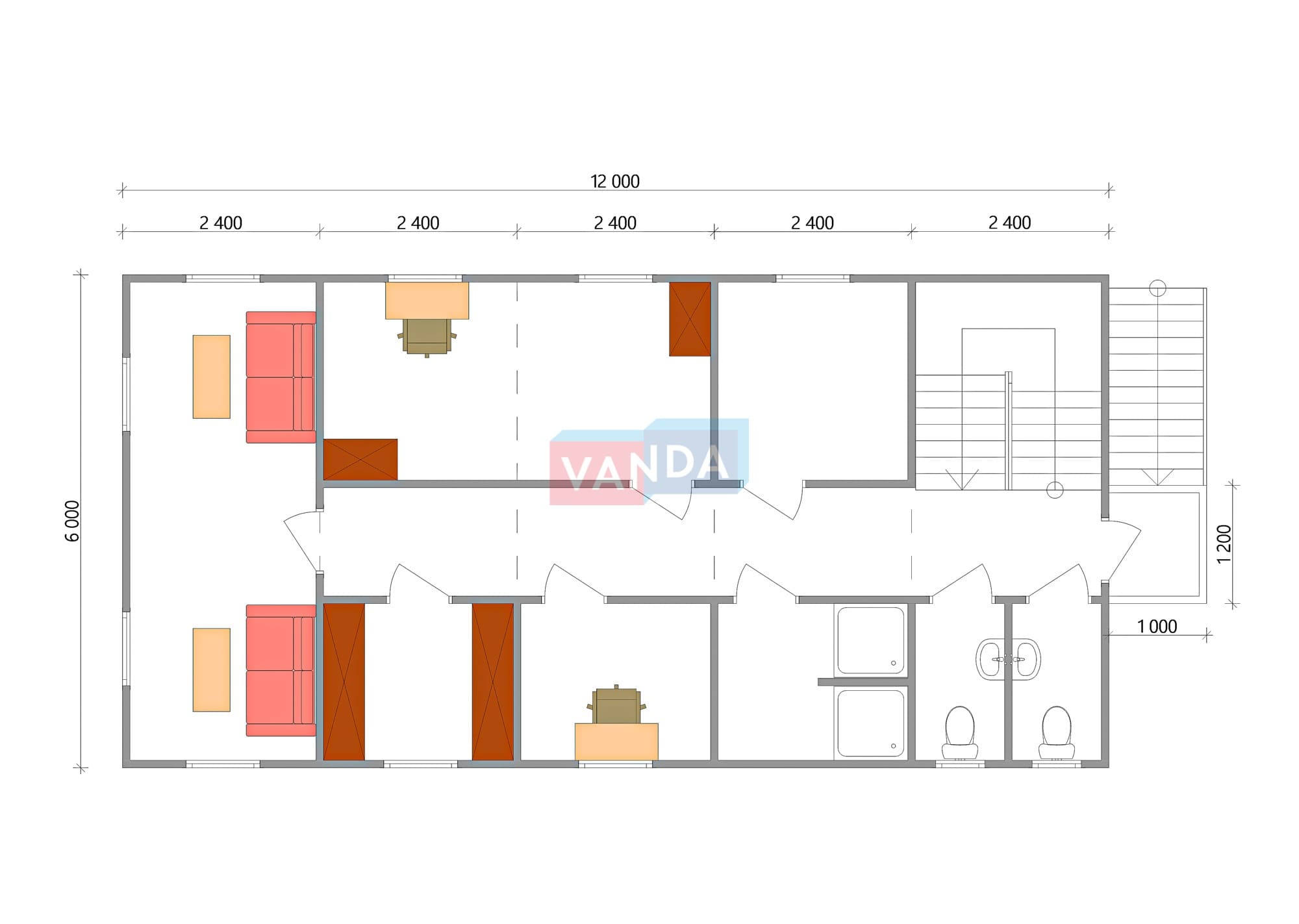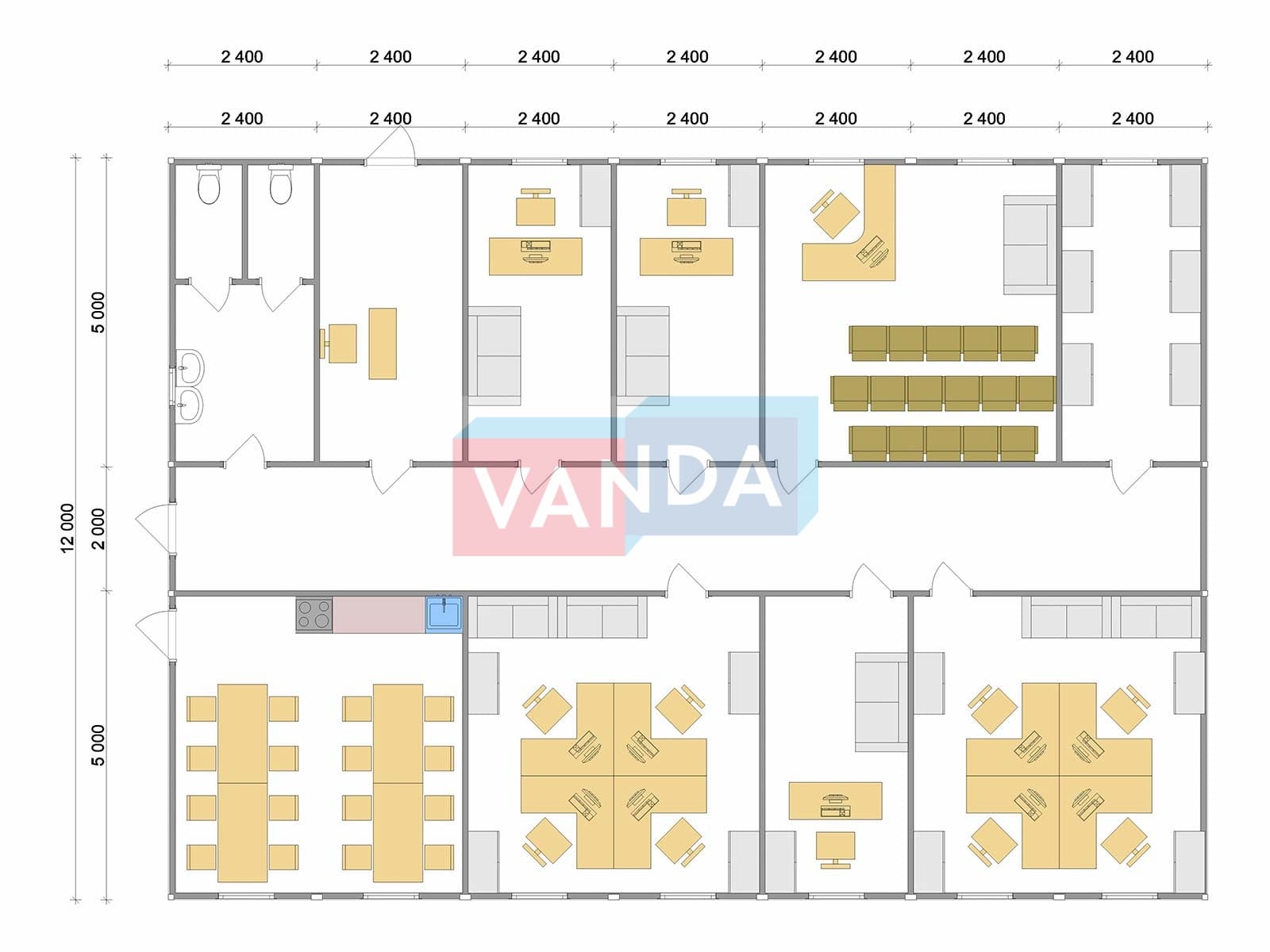 Модульная бытовка с плоской крышей 7.2x6.0 7.2x6.0 43.2 OSB 9 мм. Оцинкованный профлист 650 000 р. Уточняйте у менеджера