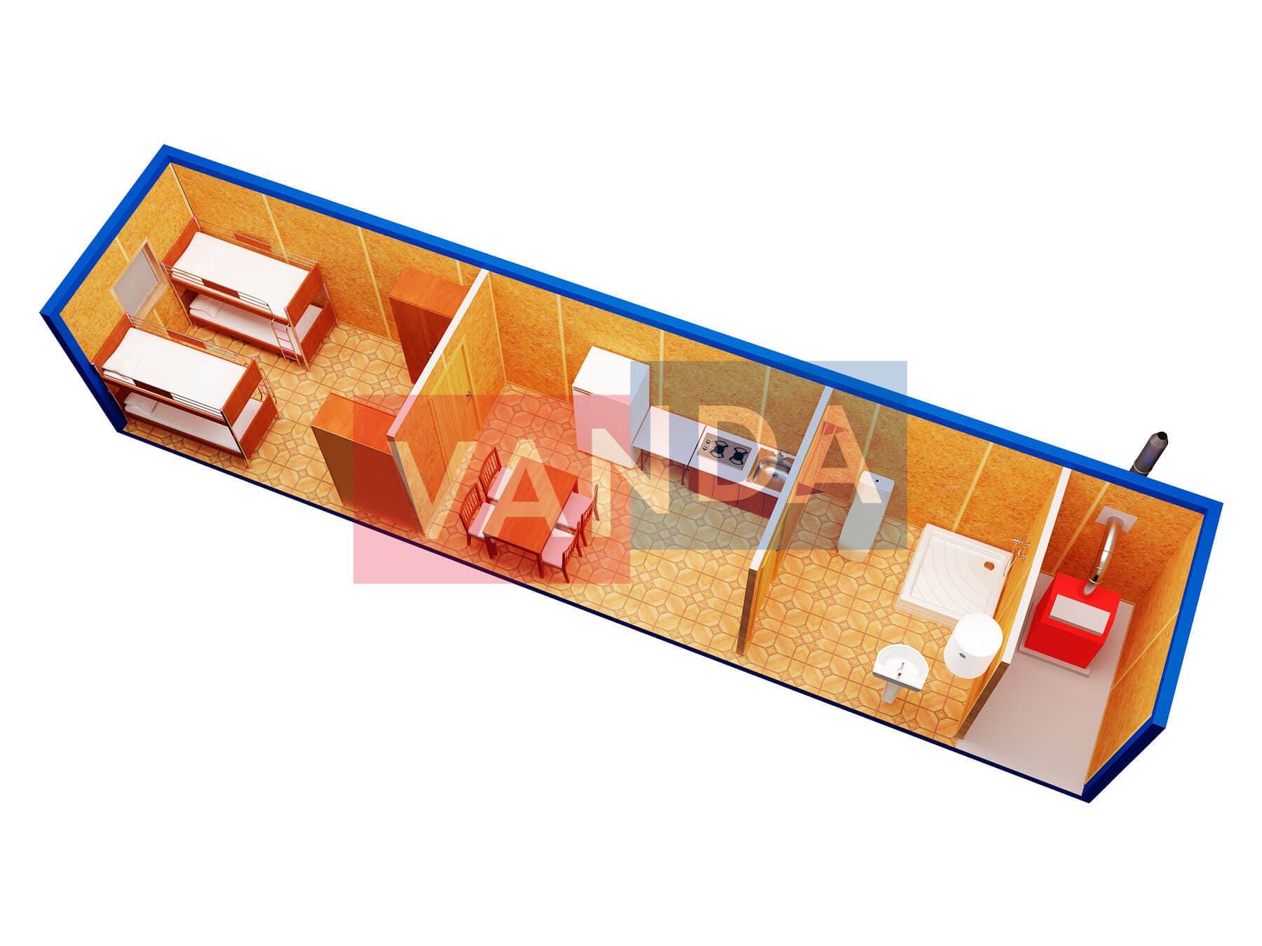 Металлическая бытовка с кухней в тамбуре 5,85 x 2,4 - Вагонка деревянная 5.85x2.4 14.04 Вагонка деревянная оцинкованный профлист 174 000 р. Уточняйте у менеджера